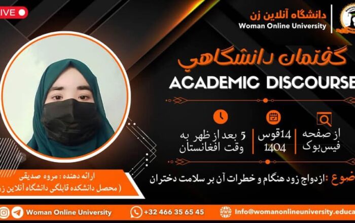 Woman Online University is pleased to announce an online academic discourse titled: The Health Risks of Early Marriage Among Girls Presenter: Ms. Marwa Siddiqi (Student at the Faculty of Midwifery, Woman Online University) Date: [...]