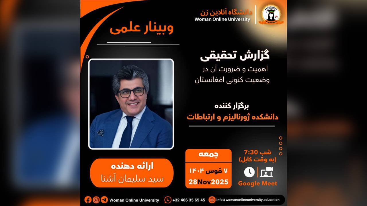 sahar joyan2025-12-23T08:22:43+00:00تاریخ برگزاری: ۲۱ دسامبر ۲۰۲۵ (مطابق با ۱۴۰۴/۹/۳۰) طی محافل جداگانه به شکل حضوری و آنلاین در داخل و خارج از کشور با حضور صدها دانشجو به گونه حضوری و اشتراک مجازی هم زمان ۱۰۰۰ شرکت کننده در گوگل میت و ۷۰۰بیننده در لایف یوتیوب دانشگاه از سه سالگی دانشگاه آنلاین زن تحلیل به عمل آمد مقدمه به تاریخ ۳۰ قوس ۱۴۰۴، محفل《گرامیداشت سهسالگی دانشگاه آنلاین زن》با حضور گستردهای از شرکتکنندگان، شامل ریاست عمومی دانشگاه، اعضای هیئت رهبری، کادر علمی و اداری، استادان، محصلین و مهمانان داخلی و خارجی برگزار گردید. هدف اصلی این محفل، بزرگداشت از فعالیتها و دستاوردهای [...]