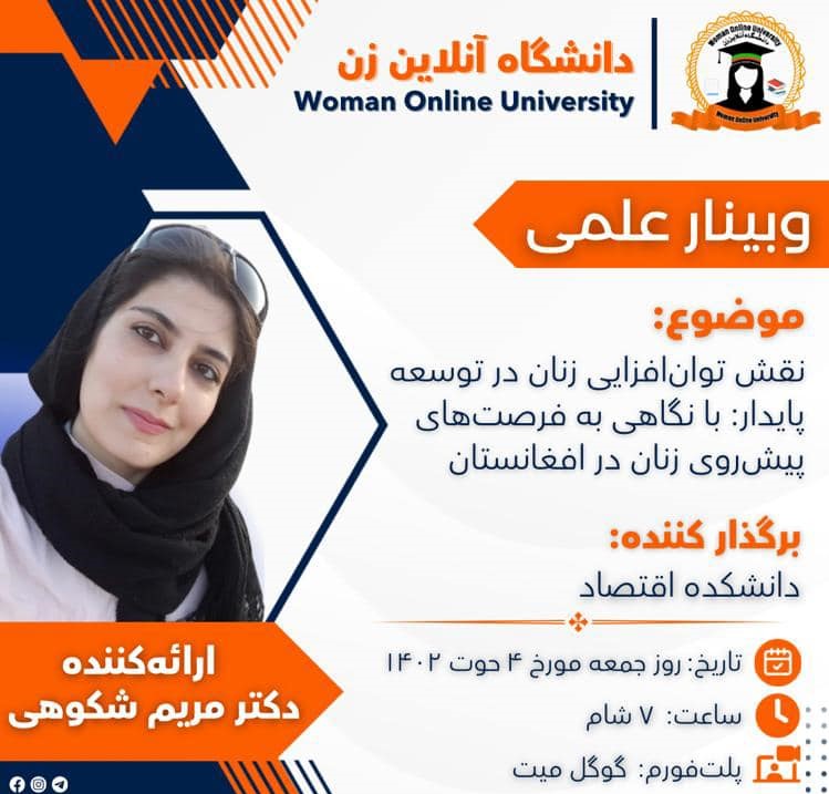 وبینار علمی: “نقش توان افزایی زنان در توسعه پایدار،با نگاهی به فرصت های پیش روی زنان در افغانستان