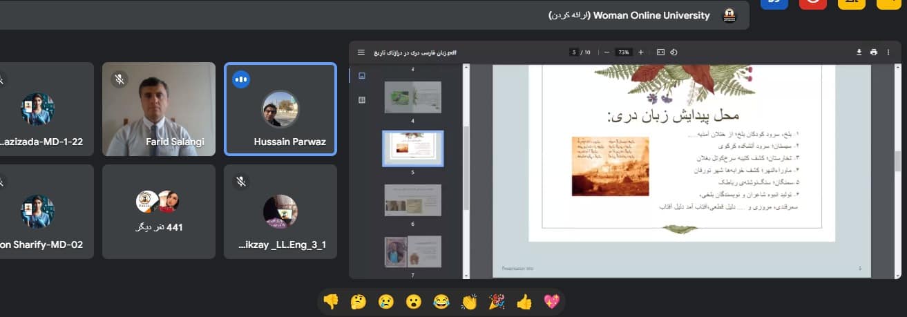 Date of Meeting: 26/6/1403 corresponding to September 16, 2024, Organizer: Woman Online University Location: Google Meet Attendees: . Professor Abdul Farid Salangi (Chancellor and Founder of woman online University) . Professor Sohaila Erfani (Academic Deputy of woman online university .Professor Adeleh Zamani, Deputy for Student Affairs .professors . Members of the Leadership Team . Deans of Faculties . Department Heads . Publications Department Staff . Teaching Staff and Student [...]