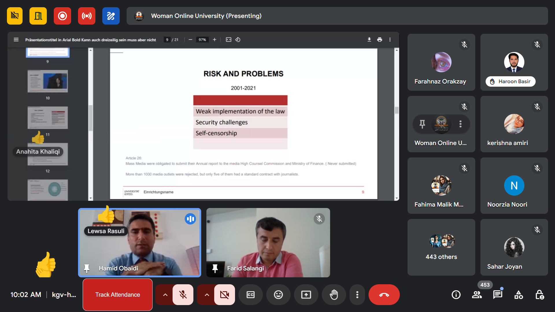 1402.10.22 د ښځۍ آنلاین پوهنتون د علمي شورا د غونډې راپور
