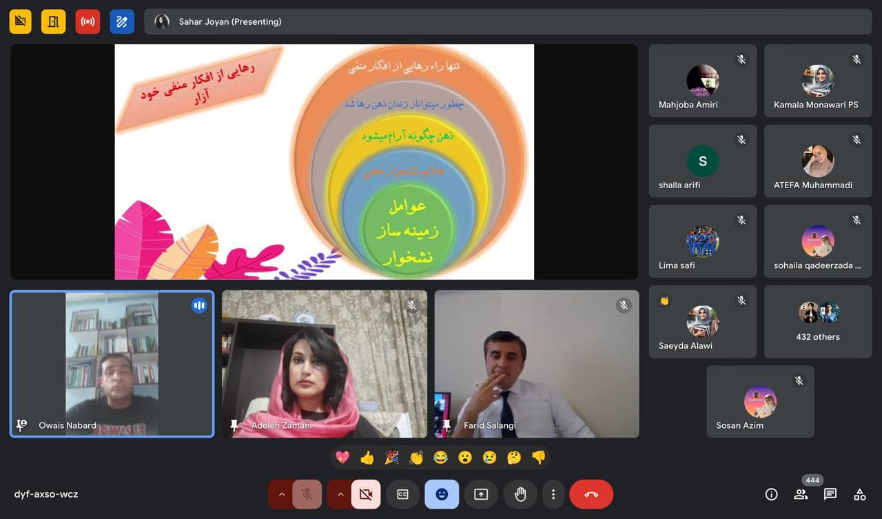 گزارش وبینار علمی: " ازدواج موفق (آنچه باید در مورد ازدواج موفق بدانید)"؛ برگزارکننده: دانشکده روانشناسی، دانشگاه آنلاین زن؛ پلتفرم: گوگل میت؛ اشتراک کنندگان: بیش از ۷۹۰ نفر وبینار علمی تحت عنوان" ازدواج موفق (آنچه باید در مورد ازدواج موفق بدانید)" بتاریخ ۷ ثور ۱۴۰۳ از سوی دانشکده روانشناسی، دانشگاه آنلاین زن برگزار گردید. ■- این برنامه توسط دو گرداننده موفق محترم ملالی سالنگی و محترم نجمه ثمکنی با [...]