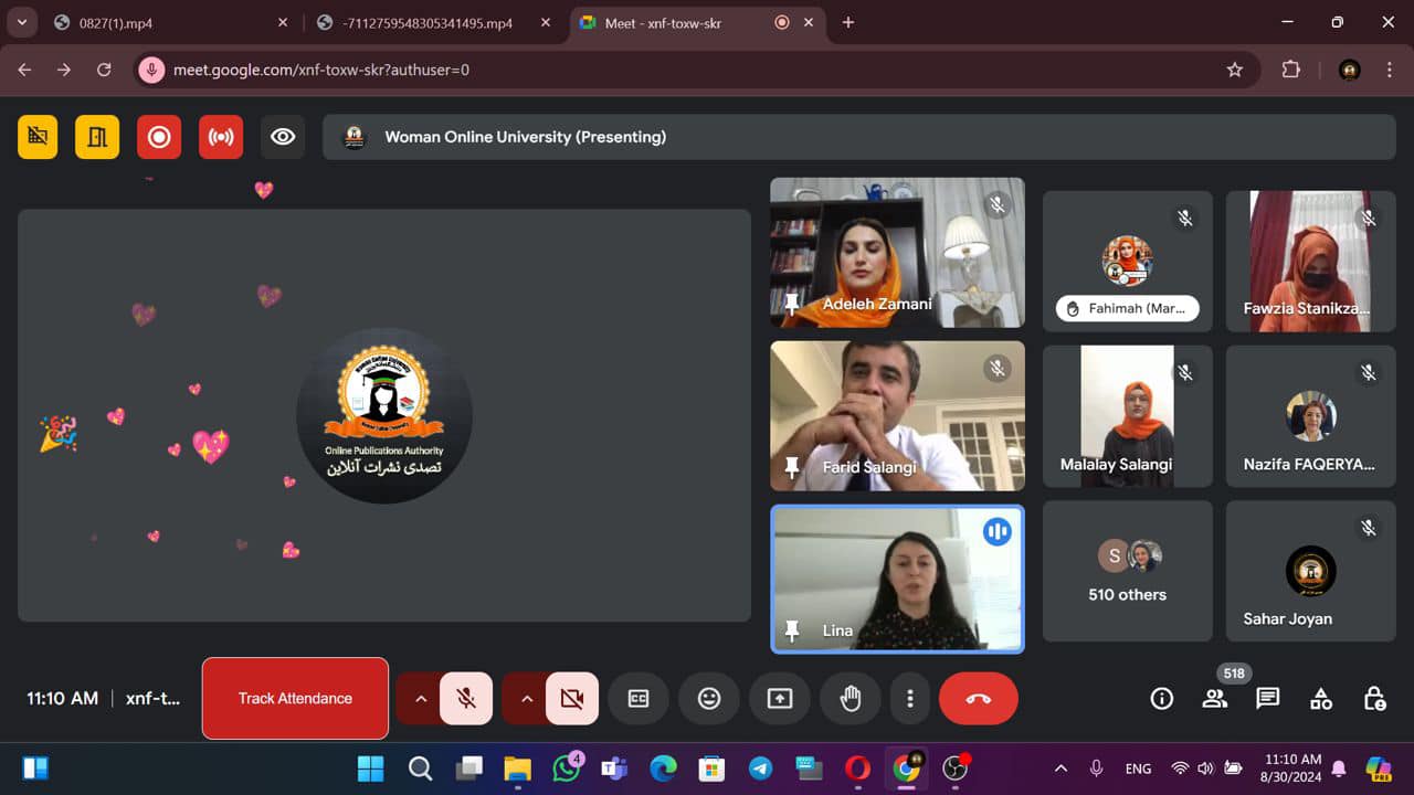 Date and Time: Friday evening, 93/05/2024 at 7 PM. Location: Online Publication Authority, Woman Online University. Platform: Google Meet. Number of Participants: 1,070 individuals. Presenter: Dr. Nazifa "Faqiryar". The webinar titled "Best Practices of Online Teaching and Learning, Effectiveness, Challenges, and Obstacles" was held with the aim of familiarizing participants with the best methods and strategies of online teaching and learning, as well as introducing the challenges and obstacles [...]