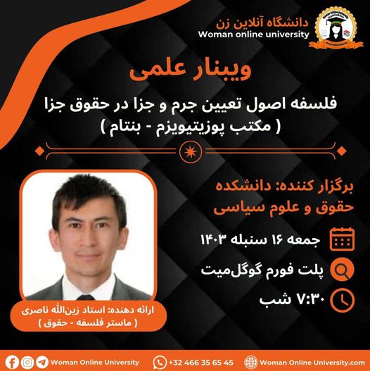 On 10/05/2024, the faculty of Law of the Woman Online University hosted an Academic webinar with over 700 participants. The webinar aimed to explore the "Principle of Legality of Crime and Punishment in Criminal Justice." Opening Remarks: The webinar began with the recitation of verses from the Holy Quran by Ms. Zohra Mirzad. Then, the successful program anouncers, Najma Samakani and Khalida Amarkhil, introduced the university. Professor Abdul Farid [...]