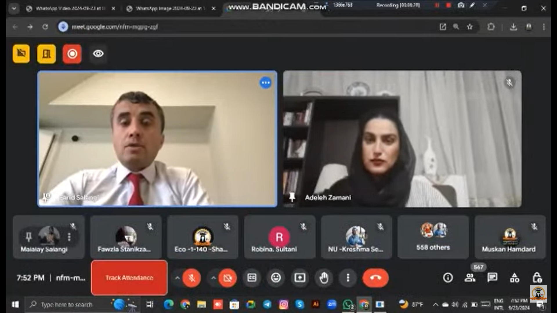 مکان:* دانشگاه آنلاین زن؛ *تاریخ:* ۱۵ ثور ۱۴۰۳ *حضور:* پوهنیار عبدالفرید سالنگی (ریس و موسس دانشگاه)، بانو عادله زمانی (معاون امور محصلان)، هیئت رهبری، رؤسای دانشکدهها، آمرین و مدیران تدریسی و امور محصلان. *دستور جلسه:* 1. برگزاری وبینارهای علمی 2. جذب استادان مسلکی 3. تعیین و تثبیت هویت دانشجویان در گوگل مت 4. روند جذب محصلین و جمعآوری اسناد برای سمستر خزانی *مقدمه:* پوهنیار سالنگی، ضمن خیرمقدم به اعضا، [...]
