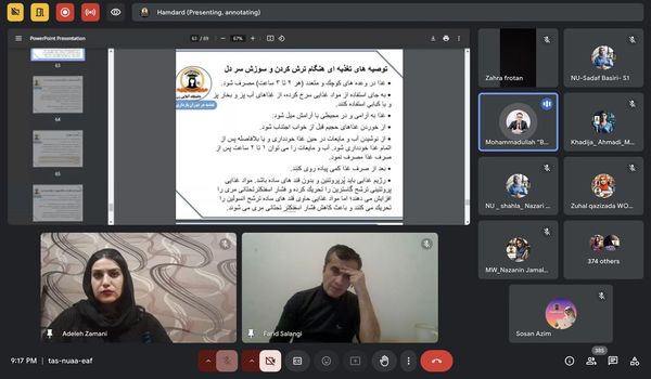گزارش وبینار علمی: " عدم کفایه تنفسی"؛ برگزارکننده: دانشکده طب معالجوی، دانشگاه آنلاین زن؛ پلتفرم: گوگل میت؛ وبینار علمی تحت عنوان" عدم کفایه تنفسی" بتاریخ 11 حوت1402 از سوی دانشکده طب معالجوی، دانشگاه آنلاین زن برگزار گردید. در ابتداء محترم استاد عادله "زمانی" معاون امور محصلان دانشگاه آنلاین زن اشتراک مهمانان ویژه را هر یک: ▪︎- محترم دوکتور پروفیسور محمد اکرم" بابری" اسوشیت دایرکتر- جمیکا مدیکال سنتر- [...]