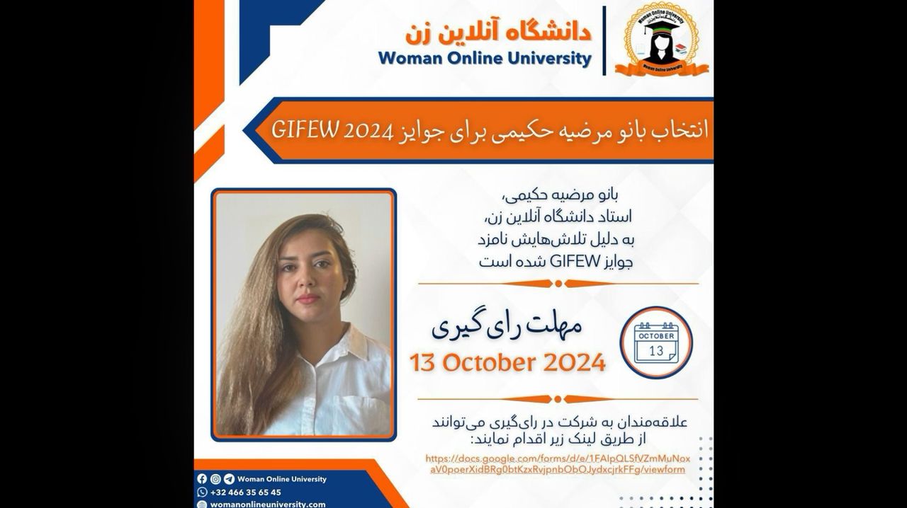 گزارش انتخاب مرضیه حکیمی استاد دانشگاه آنلاین زن برای جوایز GIFEW Global Evolutionary Woman Awards 2024